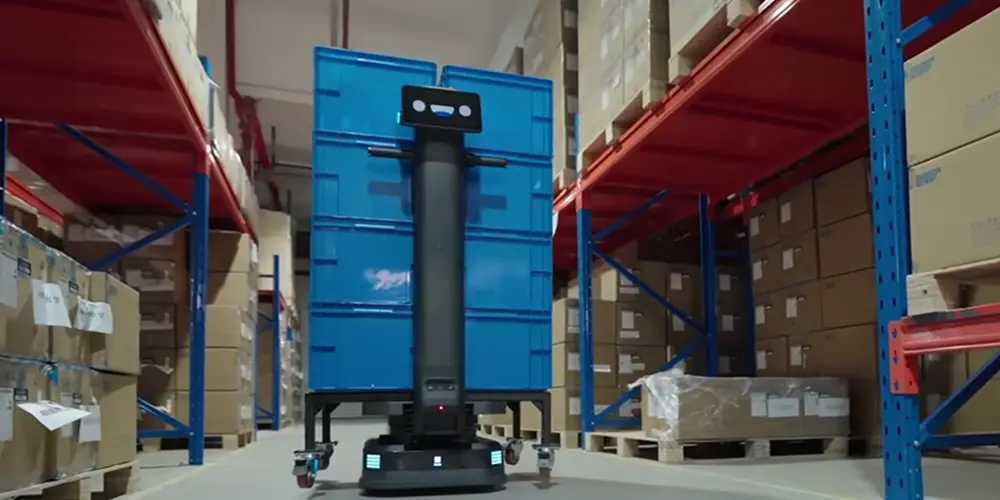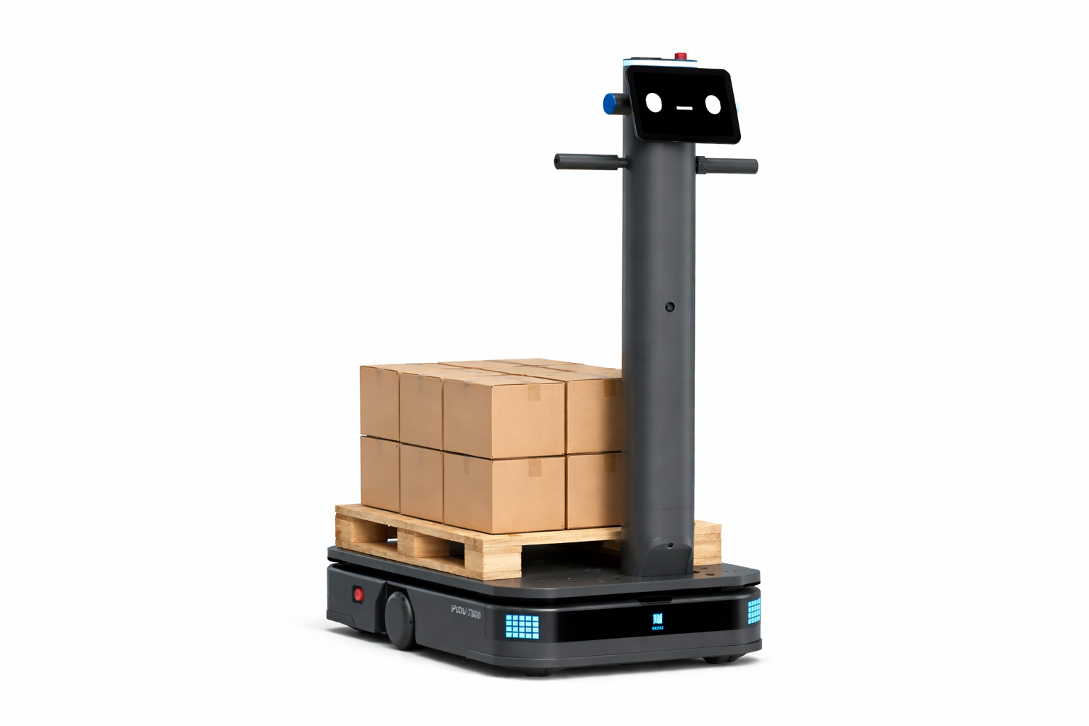 Den håndterer transport imellem fx lager, arbejdsstationer og varemodtagelse og kan tilpasses forskellige opgaver.
